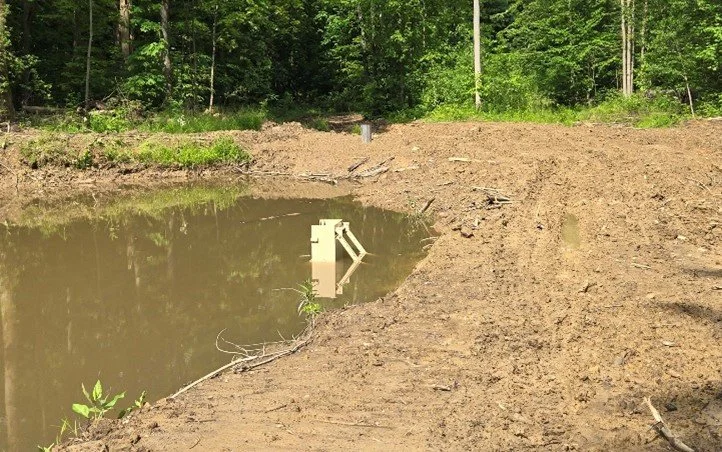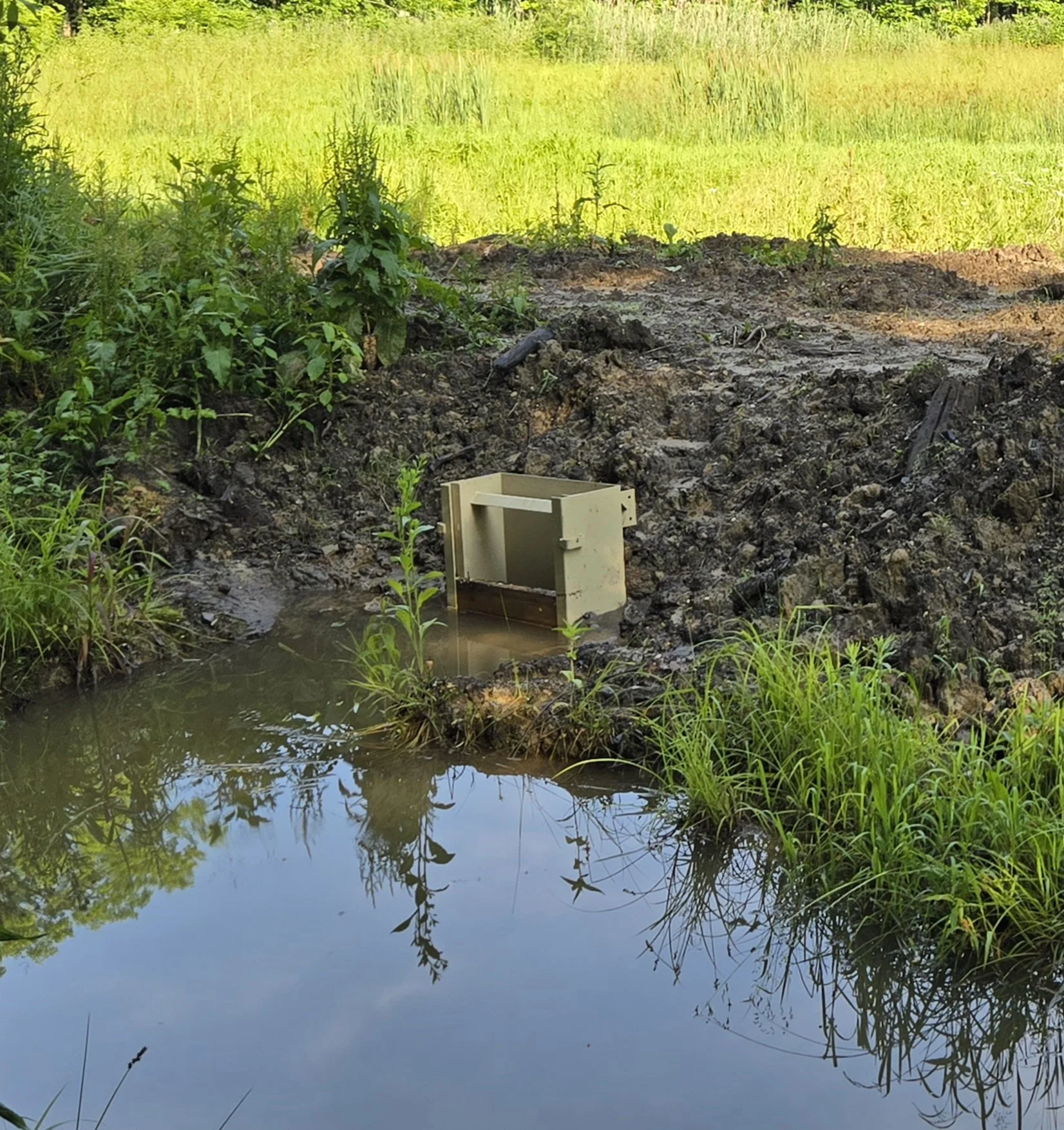 On taller structures, excess backfill will slide into the water and in front of the box blocking the entrance of the riser.