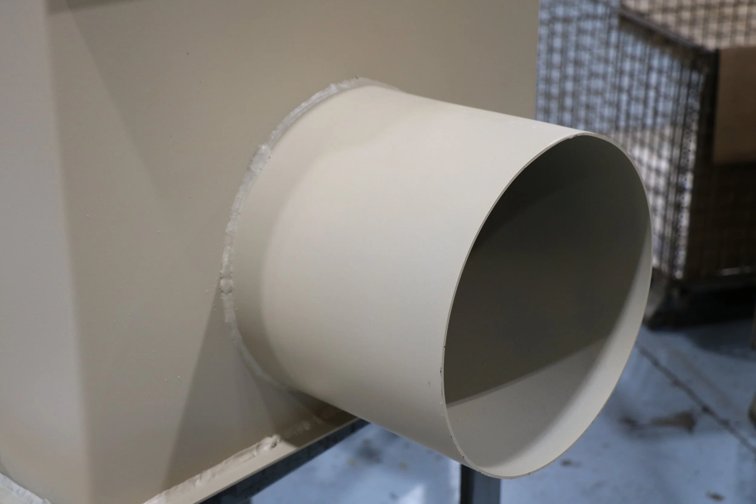Outlet of the box showing the nipple to accept the HDPE pipe.