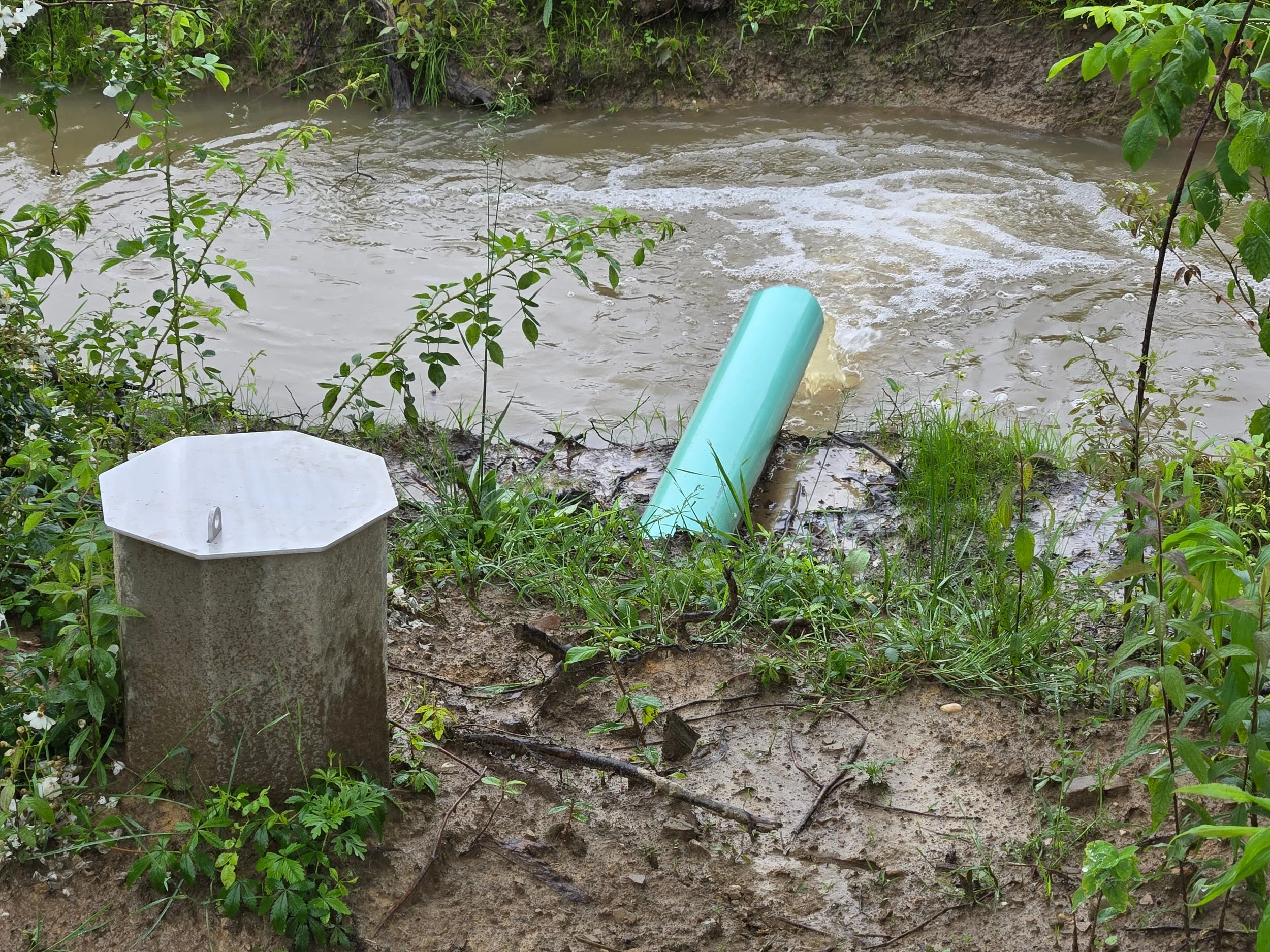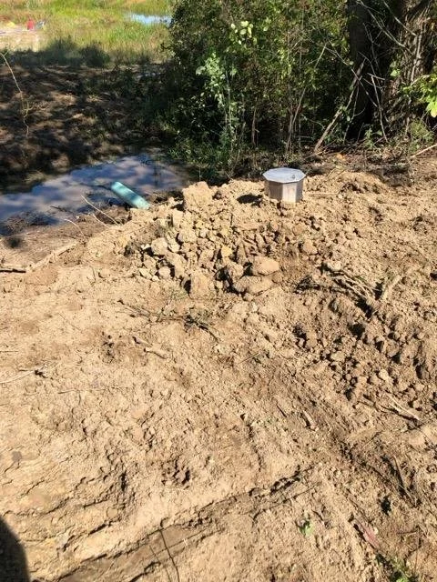 Bury the controller and pipe, avoiding rocks and large clumps of soil that could exert excessive pressure on the system. The aluminum control boxes are very durable. Backfilling with an excavator is acceptable. Stoplogs do not need to be in place during installation.