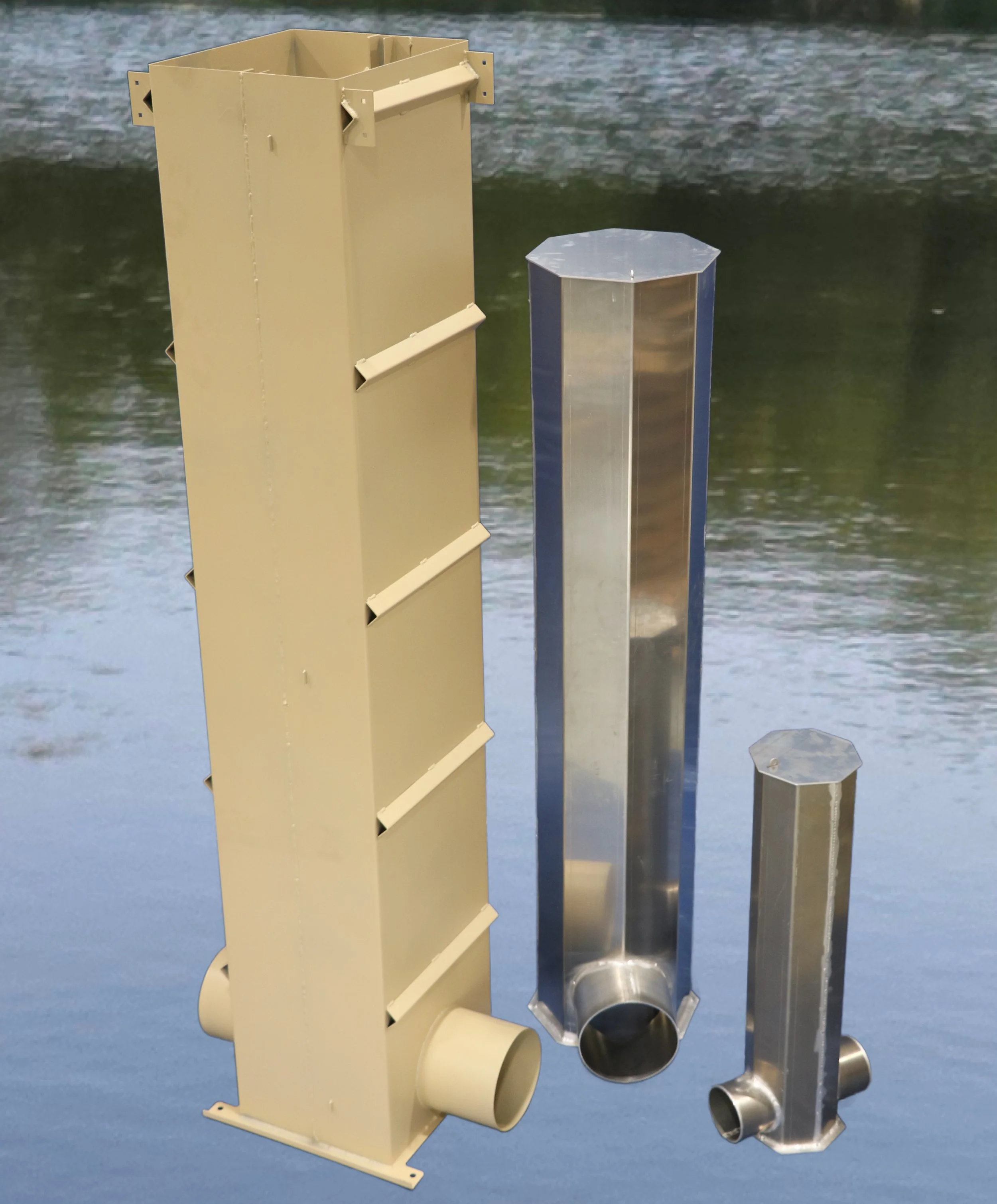 10-foot tall steel inline pond leveler in the manufacturing shop